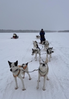 Ensuite, effectuez une balade en traîneau de 7 à 10 km où vous serez le musher. Vous pourrez ainsi mener vous-même la meute.