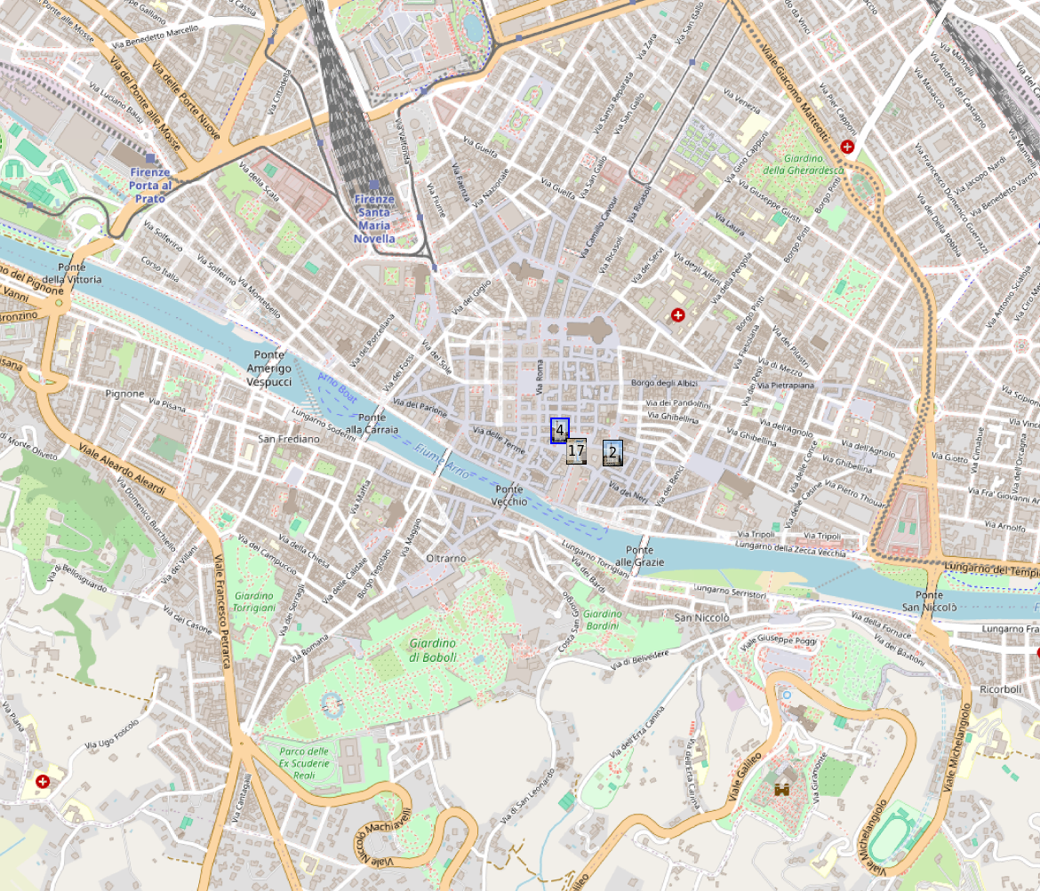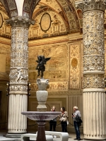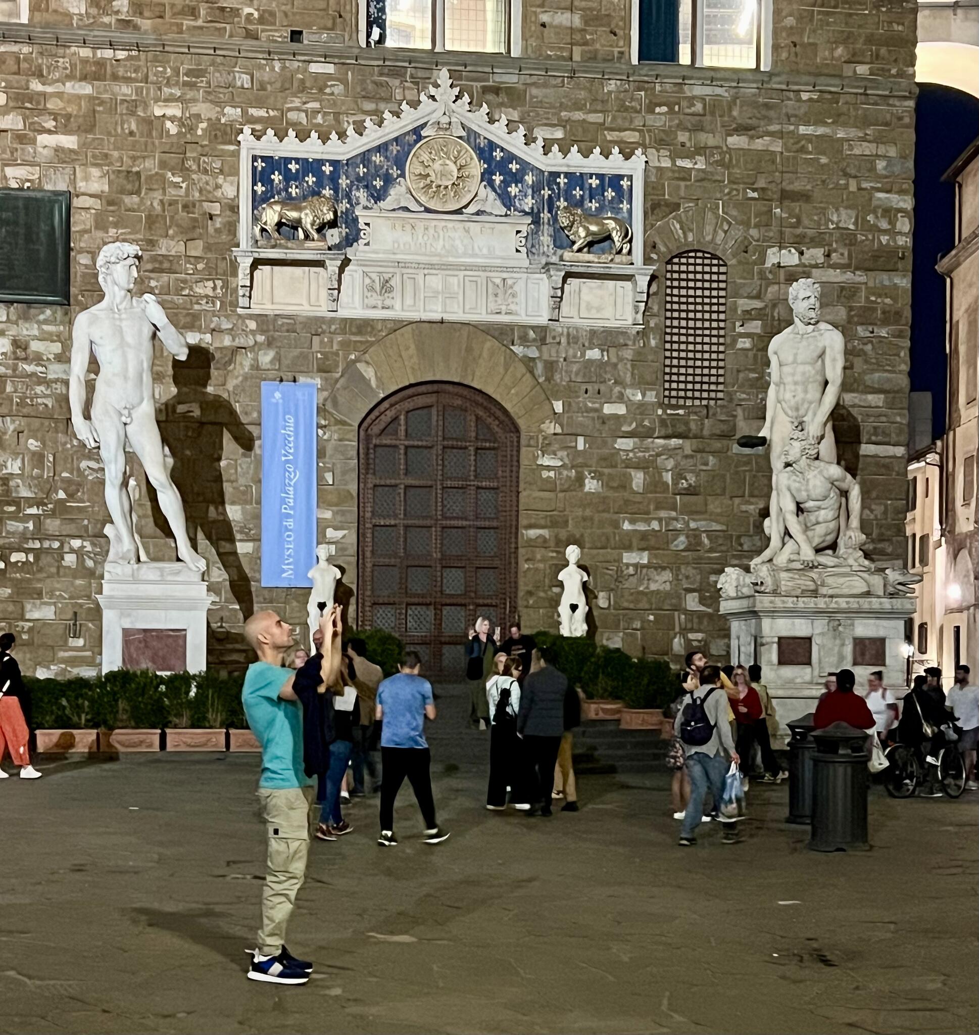 La Piazza della Signoria est l'une des places les plus emblématiques de Florence, située au cœur de la ville. Elle est entourée de bâtiments historiques comme le Palazzo Vecchio, ancien siège du gouvernement florentin. La place est célèbre pour ses nombreuses statues en plein air, dont la fontaine de Neptune et la réplique du David de Michel-Ange. Elle abrite également la Loggia dei Lanzi, un musée en plein air présentant des sculptures classiques. C'est un lieu central pour la vie culturelle et politique de Florence depuis le Moyen Âge.
