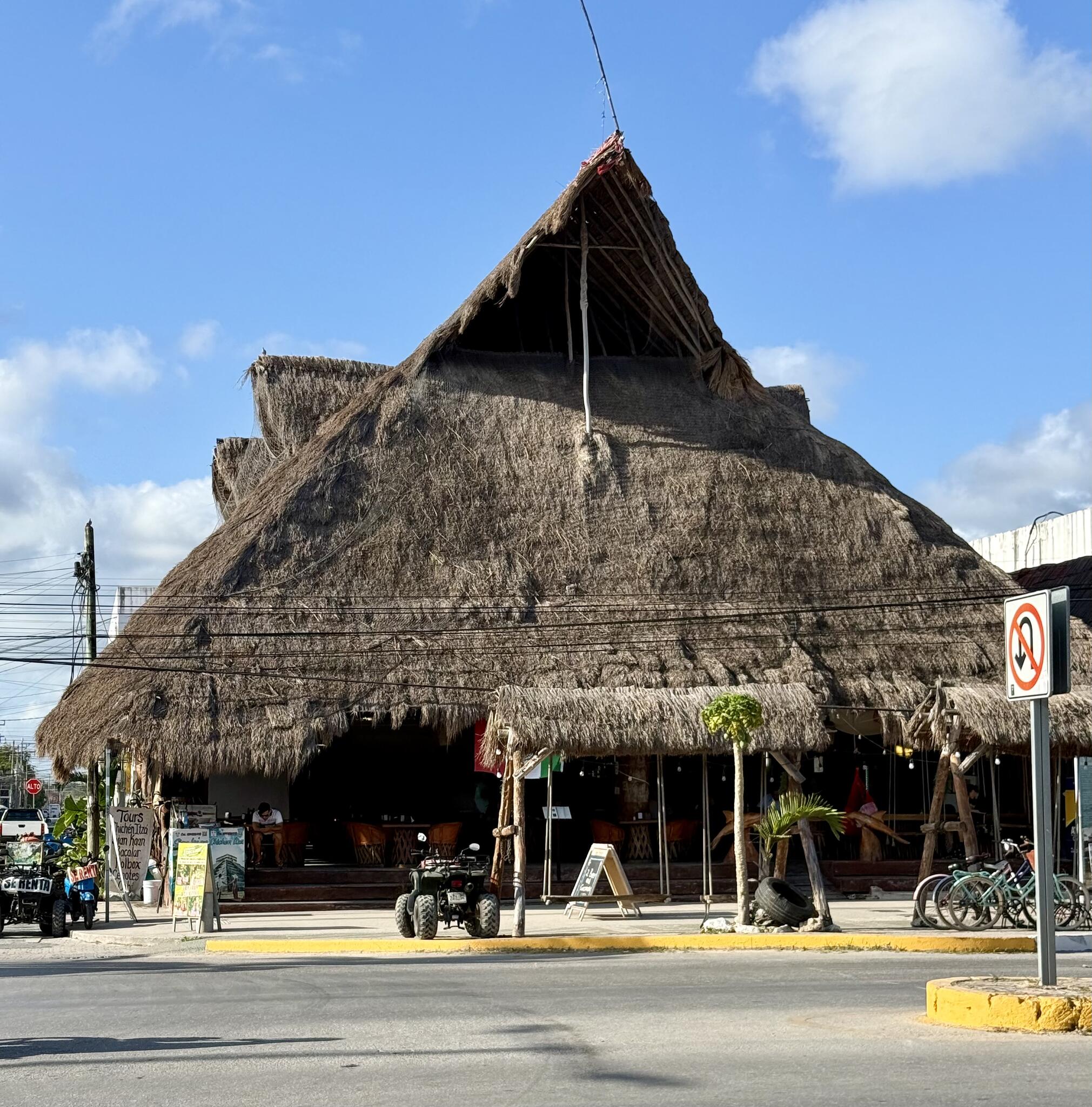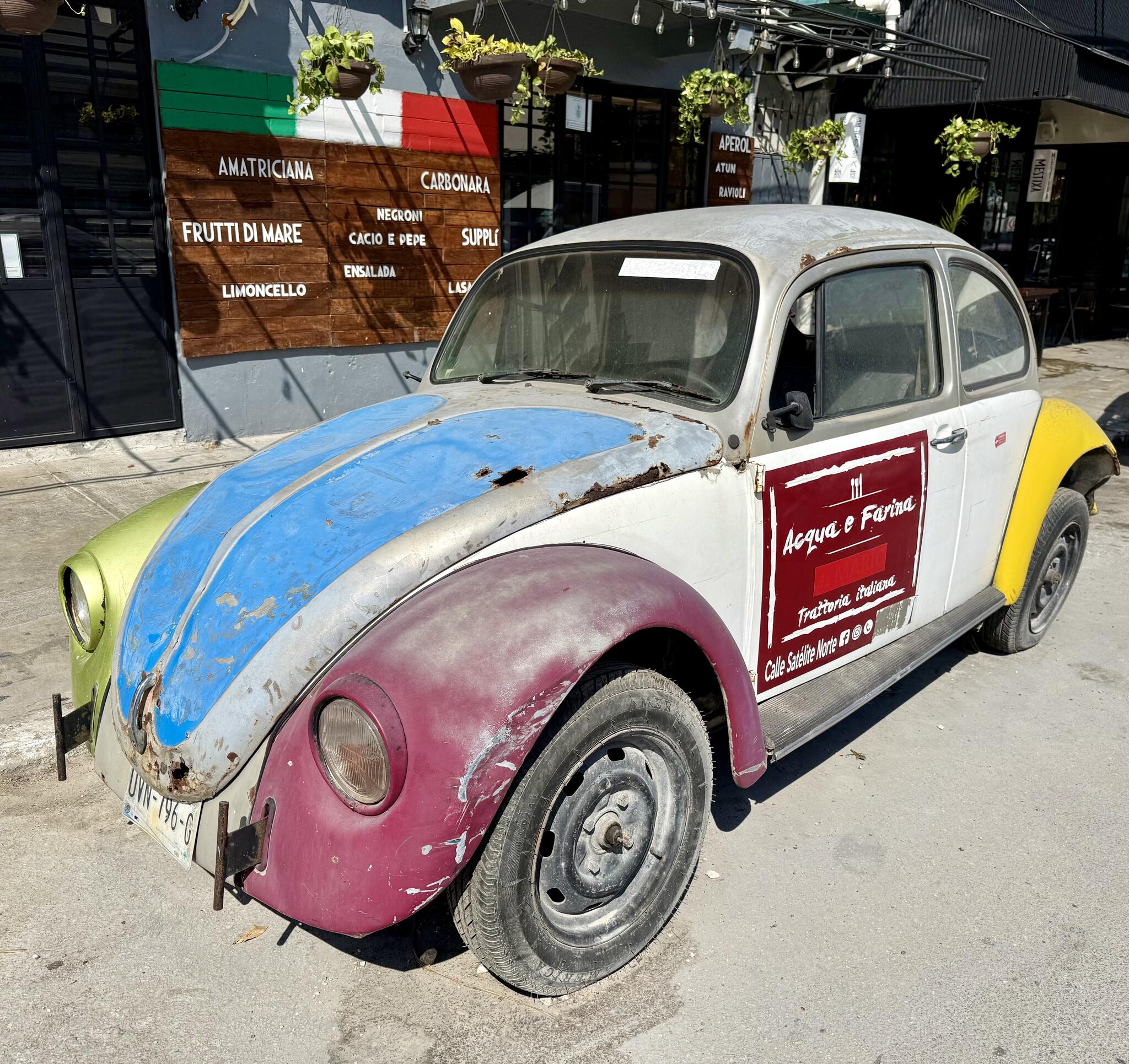 Le centre ville de Tulum est similaire à celui des autres villes du Yucatán, avec ses rues pavées, ses bâtiments coloniaux et ses vieilles voitures, comme les coccinelles.