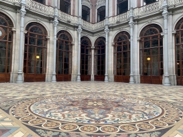 Patio das Nações : Cette cour intérieure est couverte d'une verrière en fer et en verre, et est décorée de blasons représentant les nations avec lesquelles le Portugal avait des relations commerciales au XIXe siècle.
