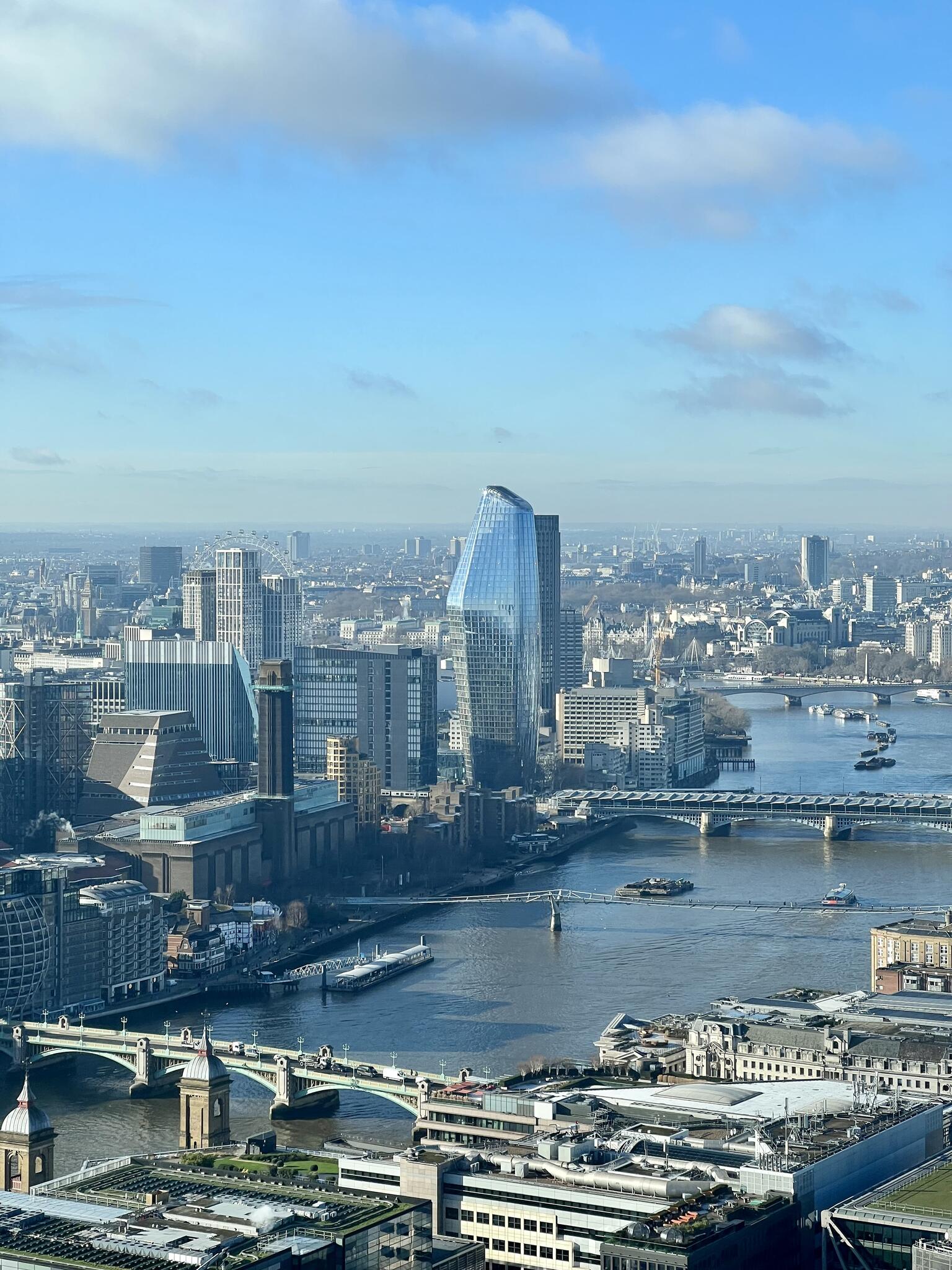 Vous surplomberez la Tamise et vous verrez, en face, l’impressionnant The Shard qui est le plus haut bâtiment de Londres avec ses 95 étages répartis sur 309.7 mètres de hauteur. Vous pouvez tout à fait visiter les deux, qui proposent des expériences assez différentes.