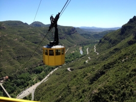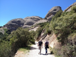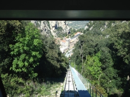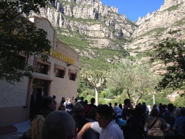 Assis au sommet de celle-ci se trouve Santa Maria de Montserrat, un monastère bénédictin. À l'intérieur du monastère se trouve une statue de la Vierge de Montserrat, l'une des rares madones noires d'Europe. C'est la retraite religieuse la plus importante de Catalogne, car de nombreuses personnes font une randonnée d'une nuit pour regarder le lever du soleil depuis le sommet de Montserrat.