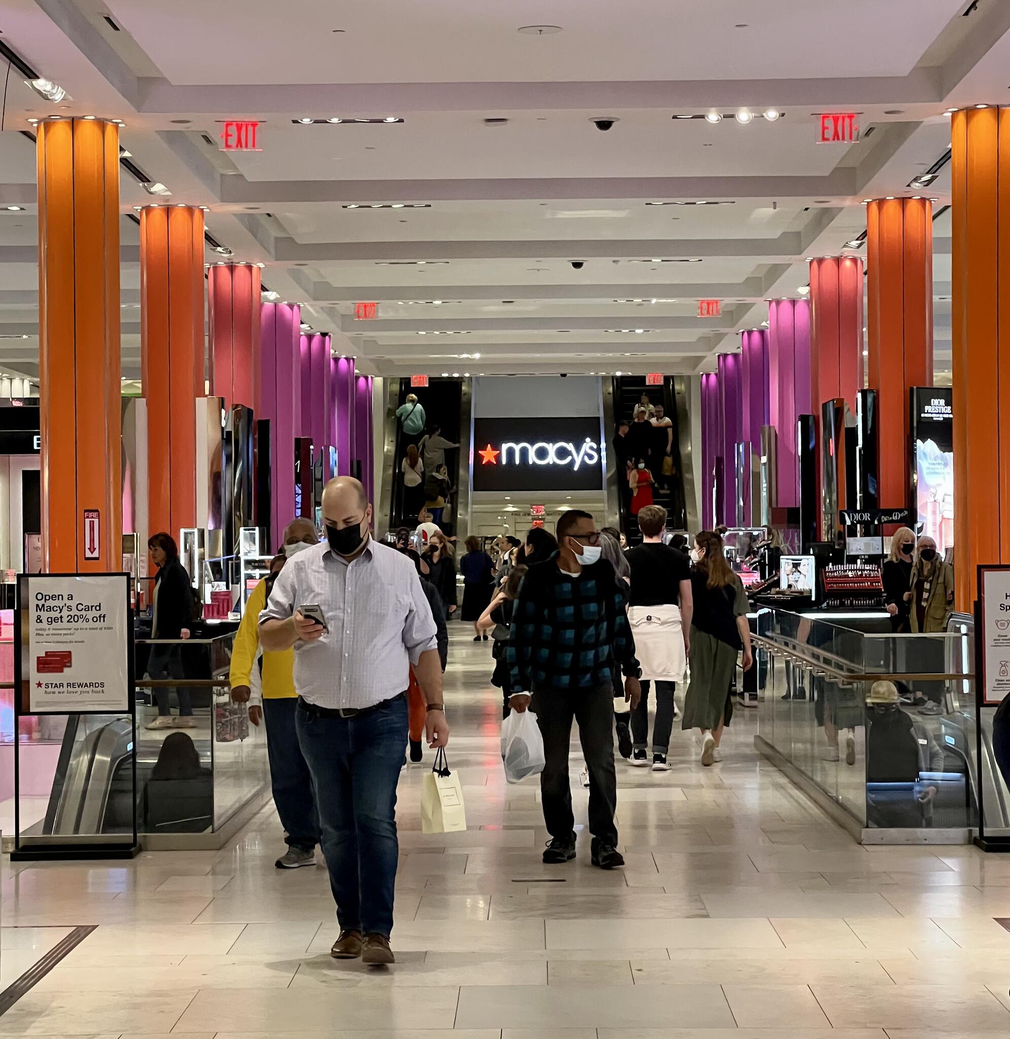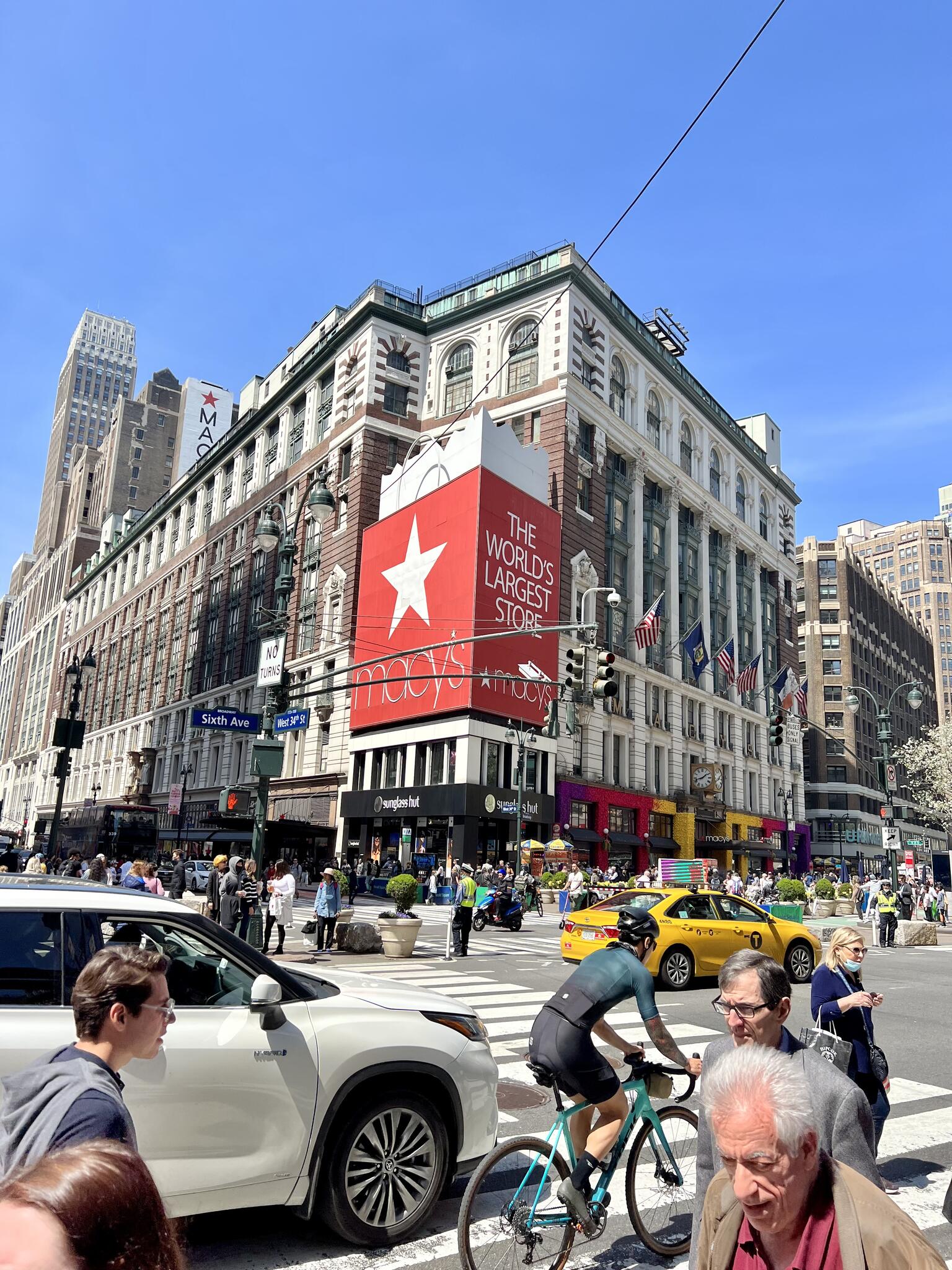 **Macy's**: Le célèbre grand magasin sur Herald Square est l'un des plus grands au monde. Macy’s propose une vaste sélection de vêtements, accessoires, articles pour la maison, et bien plus encore. Le magasin est particulièrement connu pour ses vitrines décorées pendant la saison des fêtes et pour le Macy's Thanksgiving Day Parade.