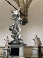 La Piazza della Signoria est l'une des places les plus emblématiques de Florence, située au cœur de la ville. Elle est entourée de bâtiments historiques comme le Palazzo Vecchio, ancien siège du gouvernement florentin. La place est célèbre pour ses nombreuses statues en plein air, dont la fontaine de Neptune et la réplique du David de Michel-Ange. Elle abrite également la Loggia dei Lanzi, un musée en plein air présentant des sculptures classiques. C'est un lieu central pour la vie culturelle et politique de Florence depuis le Moyen Âge.