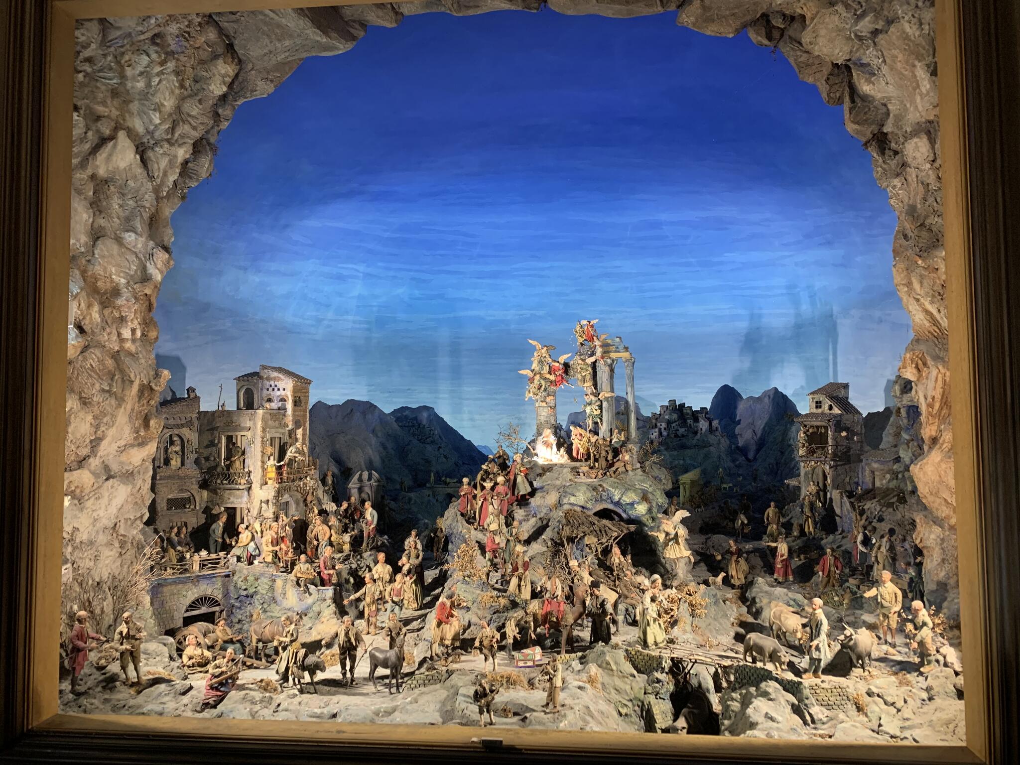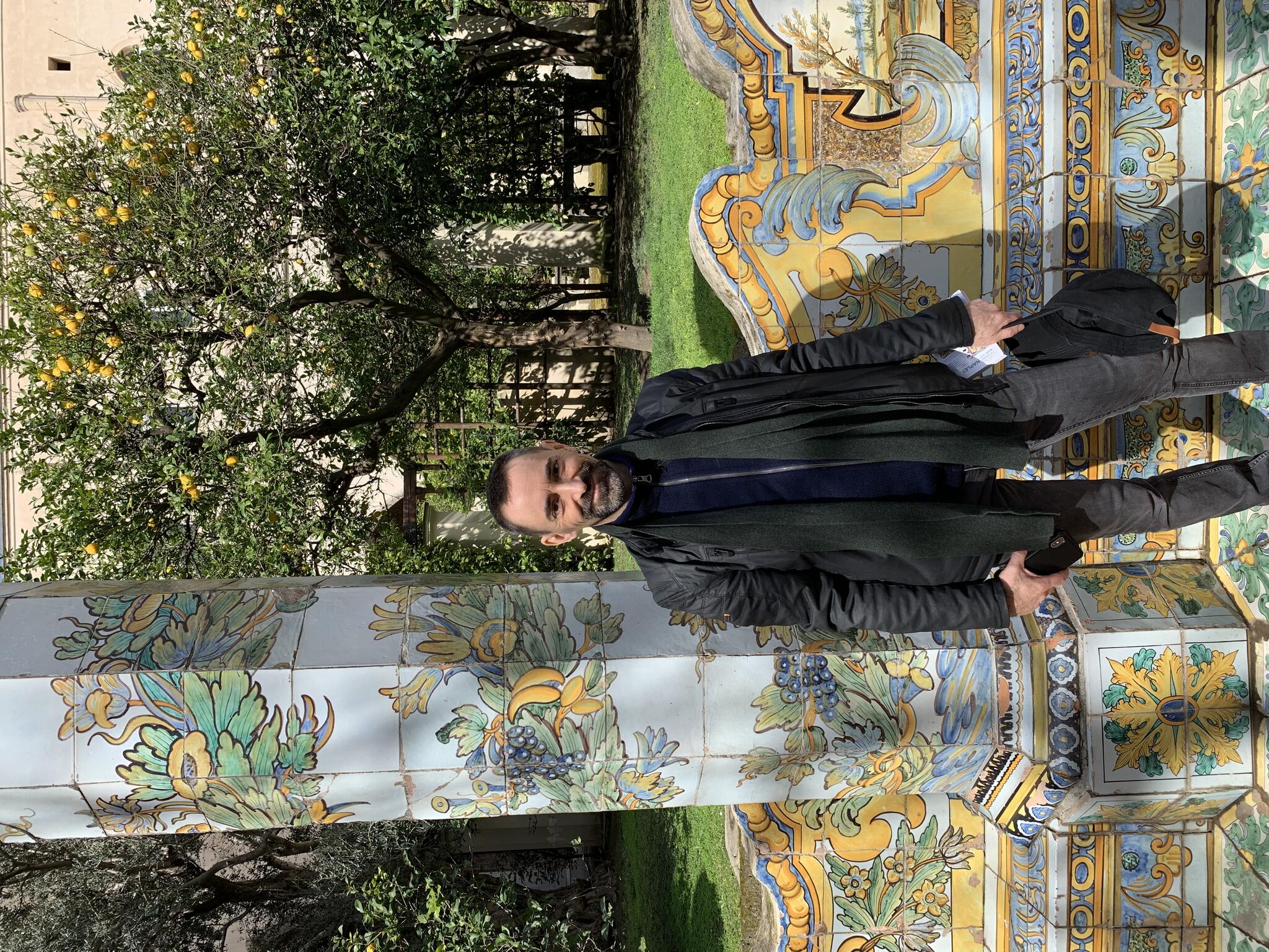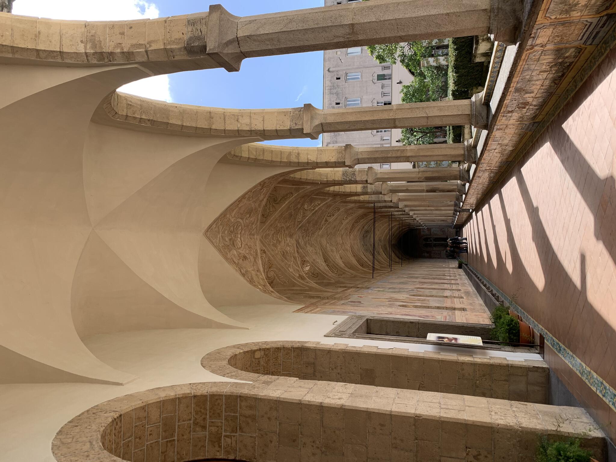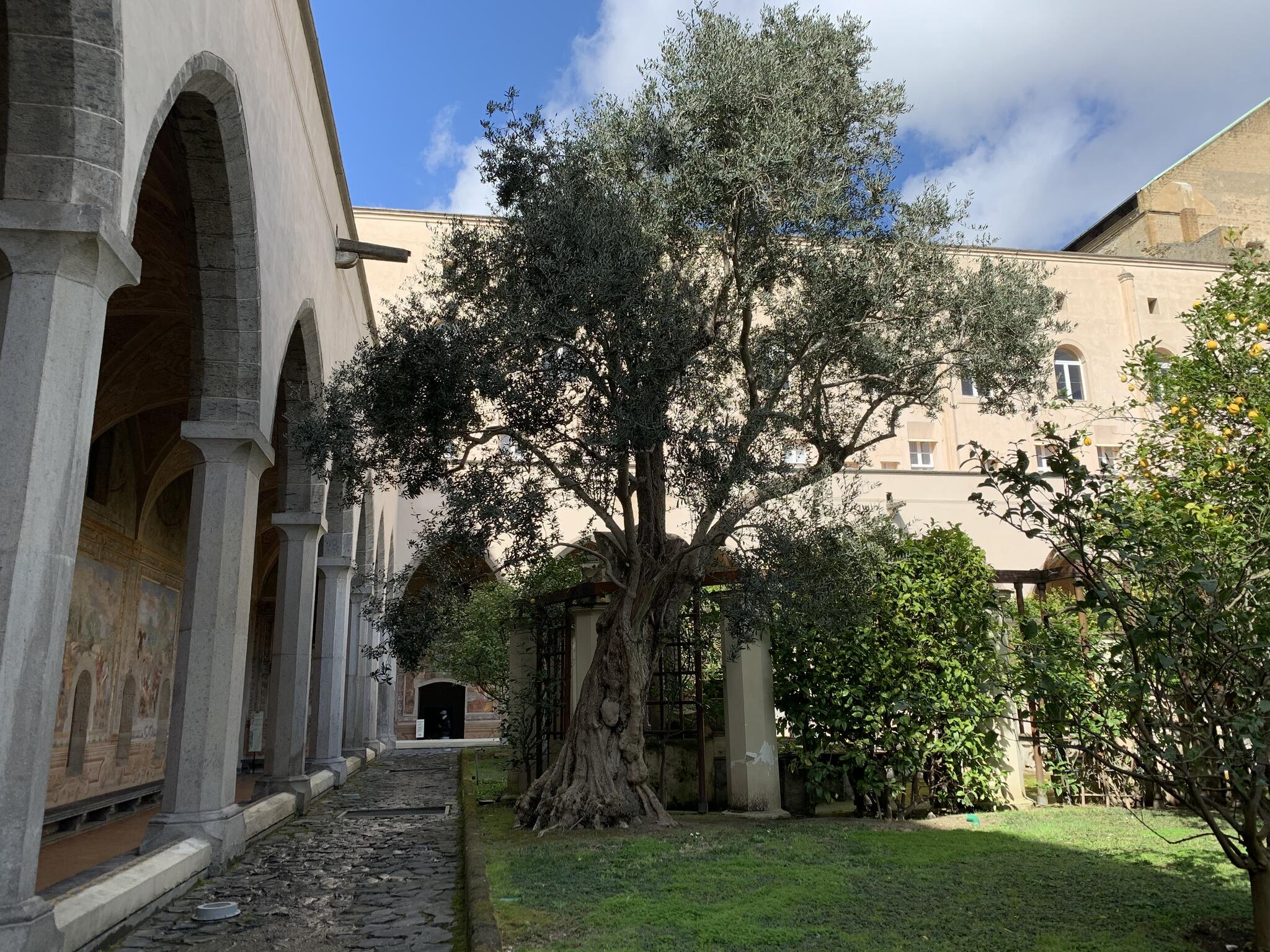 Santa Chiara est célèbre pour son cloître majestueux décoré de fresques et de carreaux de faïence peints, représentant des scènes de la vie quotidienne et des paysages. Ces carreaux de céramique, typiques de la région de Campanie, ajoutent une touche de couleur vive qui contraste avec l'austérité gothique de l'église.