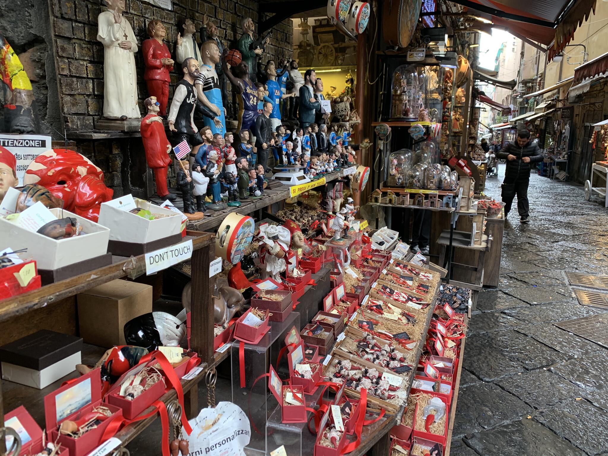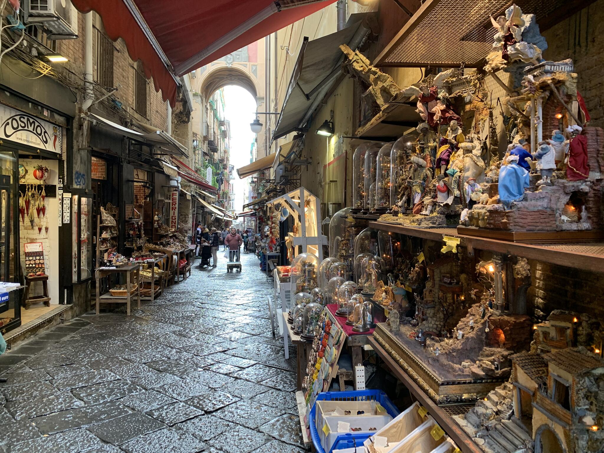 Via San Gregorio Armeno, située dans le centre historique de Naples, est mondialement célèbre pour ses boutiques artisanales spécialisées dans la fabrication de crèches de Noël et de figurines. Cette rue étroite et pittoresque est souvent appelée la « rue des crèches » (Via dei Presepi) et est particulièrement animée pendant la période de Noël, lorsque des visiteurs du monde entier viennent admirer et acheter les scènes de nativité minutieusement détaillées et les figurines faites à la main.