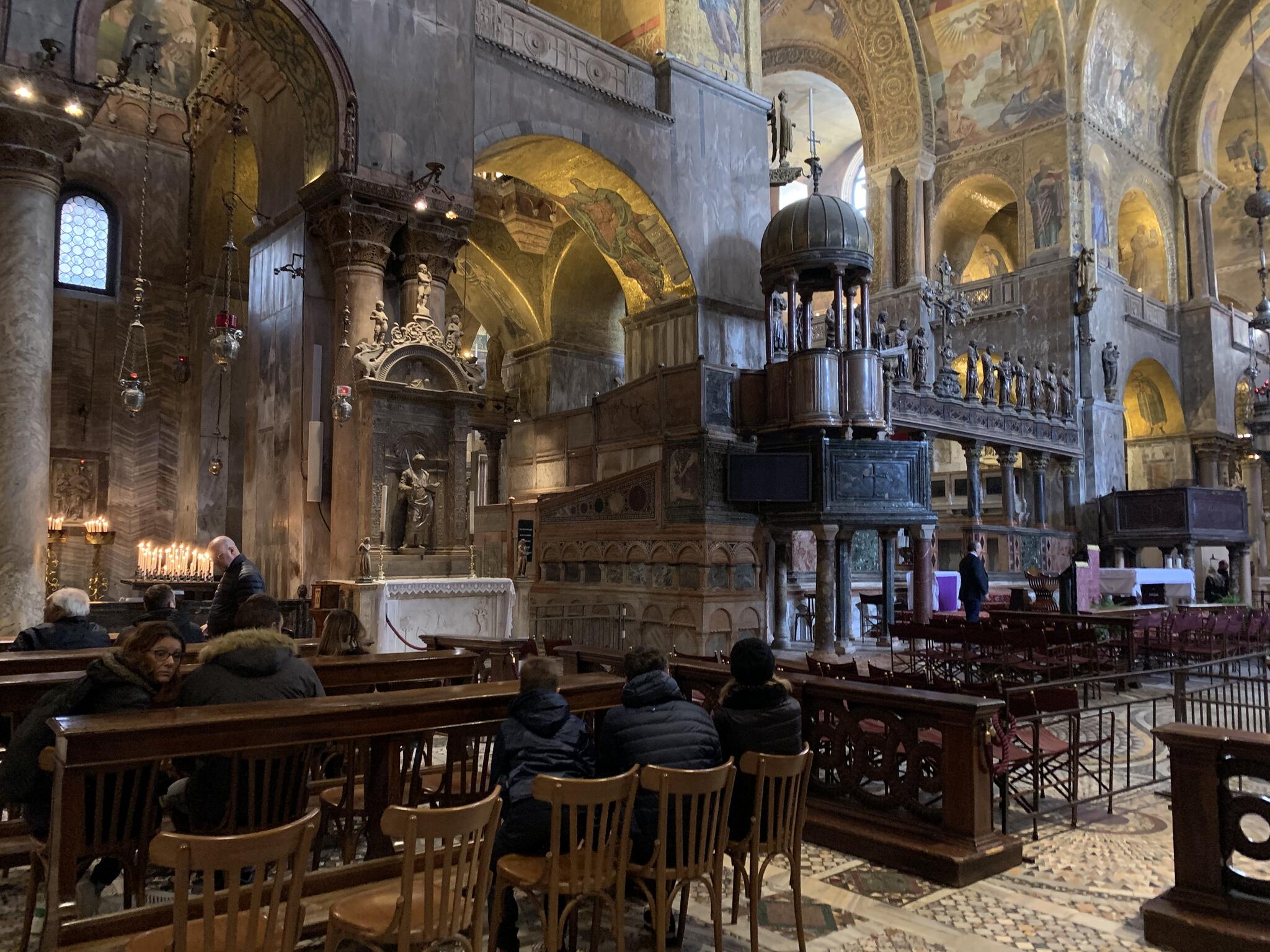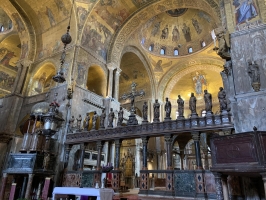 Le célèbre Pala d'Oro, un autel en or orné de pierres précieuses, et le trésor de la basilique, qui contient des reliques et des objets sacrés de grande valeur, sont des attractions majeures. La basilique est également connue pour son impressionnant campanile et son rôle historique en tant que centre religieux et politique de la ville.