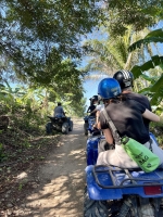 Découvrez les paysages luxuriants de Koh Samui lors d'une balade inoubliable en quad grâce à cette visite guidée. L'aventure commence par une prise en charge à votre hôtel n'importe où sur l'île, et une rapide introduction sur la sécurité avec votre guide. Montez ensuite à bord de votre quad japonais authentique et rendez-vous dans la jungle verdoyante de Koh Samui.